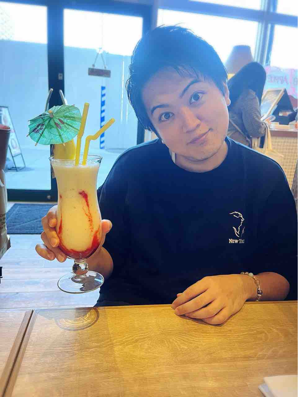 ヴァージンラバフローというドリンクで、何が入ってるのかよくわからなかったのですがバナナ感があり美味しかったです